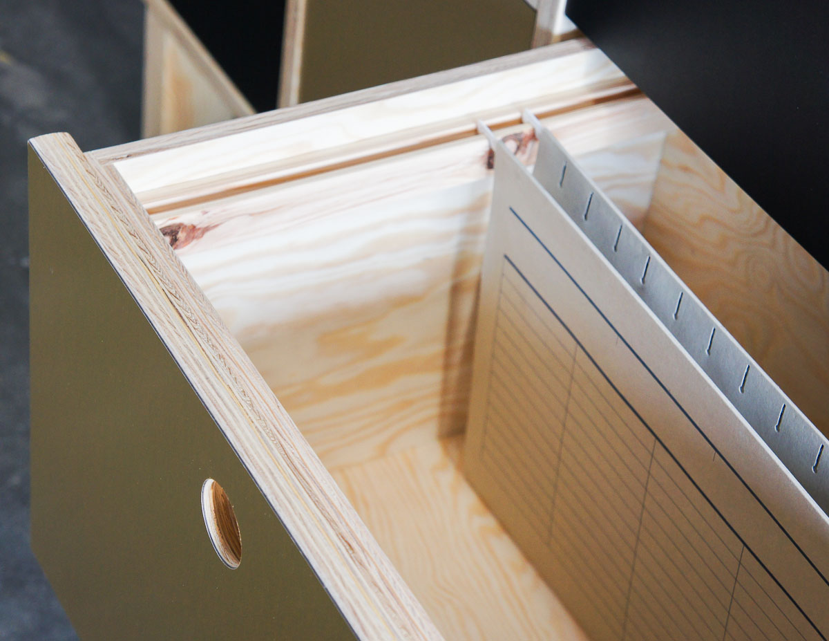 Atelier Antipode | office cabinet in plywood with forbo desktop furniture linoleum and gold brushed laminate Atelier Antipode | office cabinet in plywood with forbo desktop furniture linoleum and gold brushed laminate custom made office furniture in pluwood with black desktop and gold brushed hpl laminate
